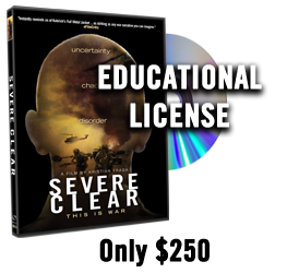 EDUCATIONAL LICENSE. This version of SEVERE CLEAR includes a site license for public performance and educational use in universities, colleges and public schools. This license is not designed for events where you charge admission. We encourage universities, colleges and public schools to organize screenings and educational courses around SEVERE CLEAR in an effort to support the sacrifices of our troops, learn more about issues such as post traumatic stress disorder (PTSD) and present the historical facts behind the Operation Iraqi Freedom.